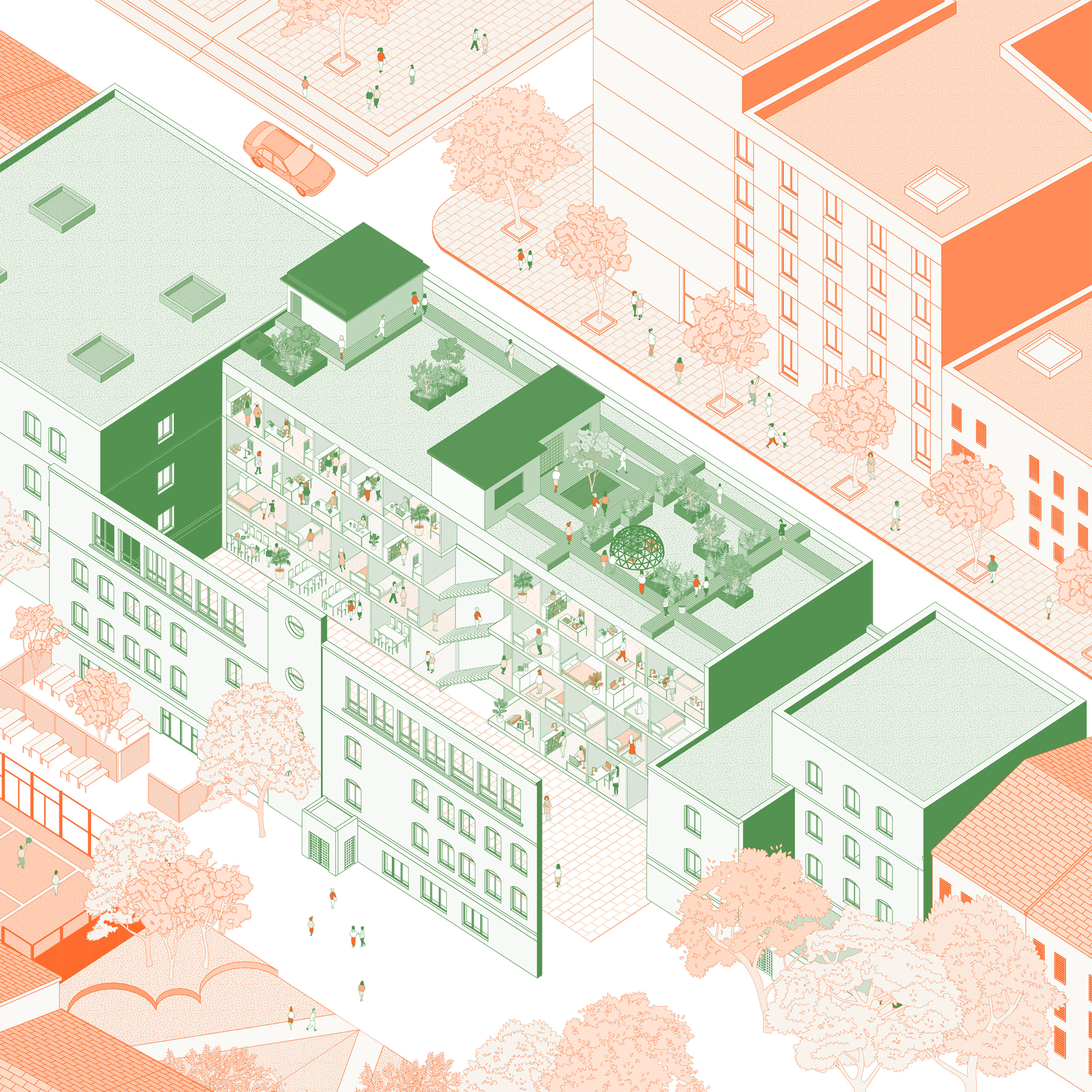 In January, Coco Velten opens and the first residents move in. The project is a mix of office spaces for non-profits and young creative practices (design, architecture, sound, film and fine arts). It also offers emergency housing to individuals and families without a home. Coco is meant to open from 2019 until 2021.
