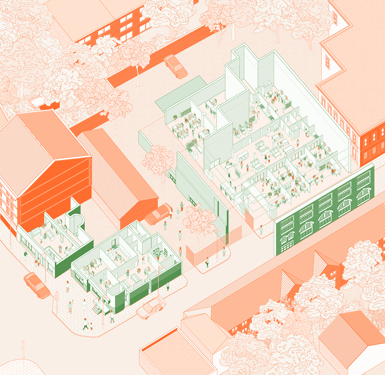 By removing the old dividing walls in the main building, the space frees for possible events, meetings, and hotdesking.